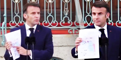 French President Macron shows a map of the Kharkiv border region and basically gives his approval that military objects in Russia can be targeted.