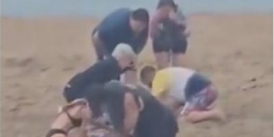 Na drugom snimku se vidi kako žena izvodi reanimaciju usta na usta dečaku, dok druga žena i muškarac pružaju prvu pomoć još dvoje dece, piše Dejli mejl .