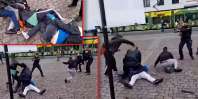 Na snimku vidimo islamistu koji uleće na skup, napada pripadnike na različite načine. Neke je udario, neke promašio dok je vitlao nožem, pojedini su zadobili rane.