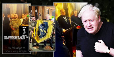 Na skupu u parlamentu Džonson je takođe fotografisan kako drži transparent Azova koji prikazuje neonacistički simbol.