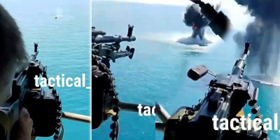 Na snimku se vidi kako vojnik koristi malokalibarsko oružje za napad na dron. Nakon nekoliko hitaca, čamac eksplodira i na površini mora pojavljuje se gust crni dim.