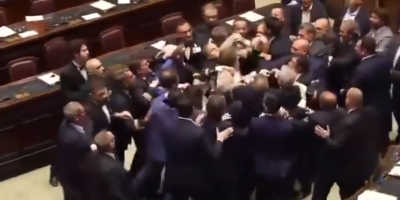 (VIDEO) Opšta makljaža u parlamentu! Sevale pesnice u Italiji, poslanici obarani na pod!