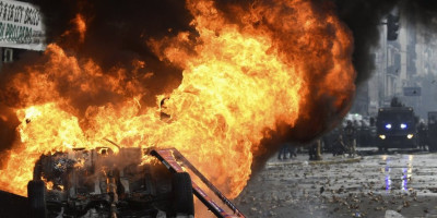 Demonstranti su na suzavac i vodene topove policije uzvratili bacanjem kamenica i zapaljivih sredstava, pri čemu je zapaljeno nekoliko automobila, prenosi BBC.