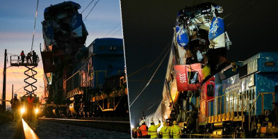 Teretni voz sa osam vagona, koji je prevozio 1.346 tona bakra, bio je pun ljudi, dok je u drugom vozu bilo 10 radnika koji su imali probnu vožnju, saopštila je državna železnička kompanija.