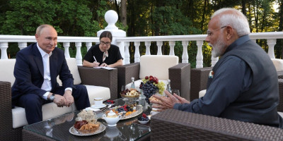 Ruski predsednik Vladimir Putin pozvao je danas indijskog premijera Naredru Modija da razgovaraju o pitanjima interakcije između dve zemlje, uz šolju čaja u njegovoj rezidenciji u blizini Moskve.