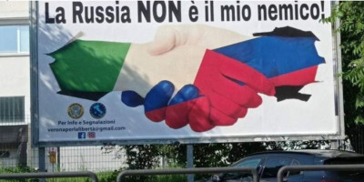 Veliki plakati sa natpisom "Rusija nije moj neprijatelj" pojavili su se u više gradova Italije, od severa do juga. Inicijativa pripada udruženjima "Verona za slobodu" i "Slobodni sindikat", koja imaju podršku kulturnog udruženja "Veneto - Rusija" iz Verone.