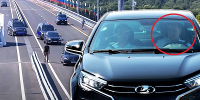 On je, dok je upravljao automobilom, napravio grešku u vožnji. Na snimku se vidi kako Vladimir Putin (71) odeven u belu košulju bez pancirnog prsluka, upravlja novim modelom automobila, ali umalo nije napravio karambol na putu.