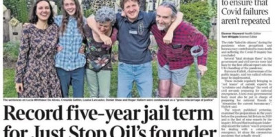 Smatra se da su te kazne najduže čak i izrečene u Velikoj Britaniji za nenasilne proteste, nadmašujući one izrečene demonstrantima Just Stop Oil Morganu Trovlandu (tri godine) i Markusu Deckeru (dve godine i sedam meseci) za blokadu i haos na mostu Dartford Crossing.
