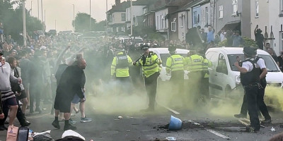 Tensions are high as Englishmen take on the police in Sunderland, UK and in other cities across the country.