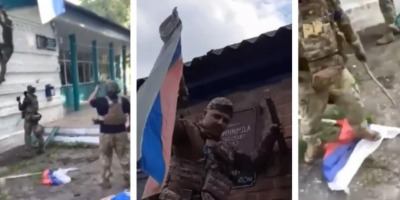 (VIDEO) Gori Rusija! Zauzimaju im naselja, bacaju i gaze zastave... Objavljeni šokantni snimci sa novih linija fronta!