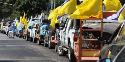 U koloni automobila koja je išla ka granicama Pojasa Gaze nalazili su se i terenci sa prikolicama, na kojima su uništeni zapaljeni automobili, navodno iz kibuca koji je Hamas napao u oktobru prošle godine. Na automobilima su se vijorile plavo-bele izraelske zastave i žuti transparenti, a sa njih su visili transparenti sa natpisom „nagodi se".