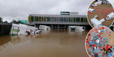 Kako se može videti po snimcima, čitave ulice su poplavljene,a voda je prodrla i u preduzeća i poplavila brojne kamione koji su se nalazili na parkingu.