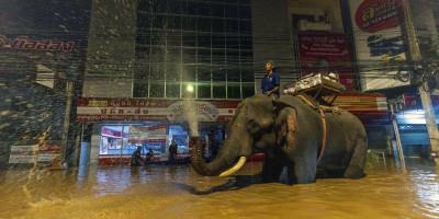 (FOTO) Neverovatni prizori obišli svet! Slonovi jedva prolaze kroz poplavljena mesta na Tajlandu!