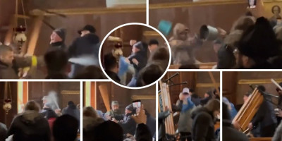 (VIDEO) Jezive scene! Otvorili vatru na vernike u Ukrajini! Maskirani napadači upali u hram, narod ih tukao kantama i klupama!
