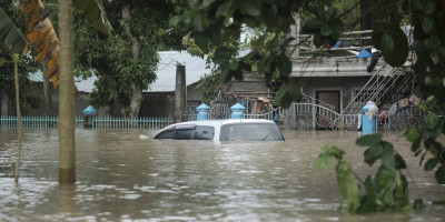 LOOK | Several people have seeked shelter in high areas as intense floods ripped through an area in Lemery, #Batangas, #Philippines during Tropical Storm #Trami (#KristinePH ).