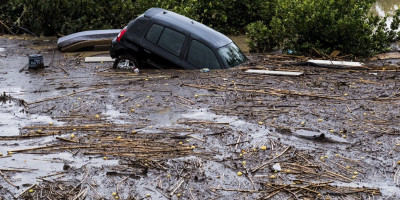 Zbog kiše je zaustavljen i drumski i železnički saobraćaj u čitavom području: ulice su se u trenu pretvorile u rečne bujice. Kroz prozor auta se popela na krov.