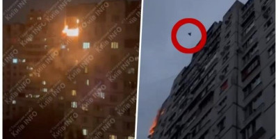 Odmah nakon napada na okrug Svjatošinskij izbio je požar na gornjim spratovima koji se brzo proširio, i kako javlja ukrajinska državna služba za vanredne situacije zahvatio je površinu od 50 kvadratnih metara.