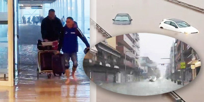 Na društvenim mrežama su objavljeni i snimci na kojima se vidi poplavljen aerodrom dok se voda sliva s plafona. Putnici za to vreme gaze kroz aerodrom.