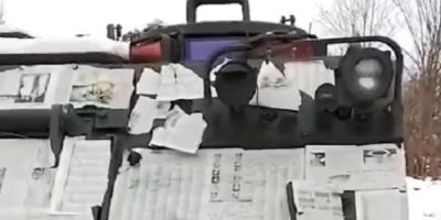 Ukrajinske snage prekrivaju svoja oklopna vozila novinama koje simuliraju zimsku kamuflažu. U nedostatku maskirnih mreža za zimske uslove, ukrajinske snage koriste neobičnu kamuflažu da prikriju svoja oklopna vozila.