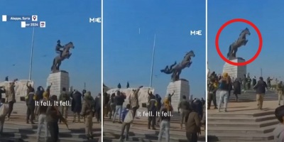 Na snimku objavljenom na Tviteru vidi se kako pobunjenici ruše statuu predsednikovog brata Basela al-Asada, koji je poginuo u saobraćajnoj nesreći 1994. godine.