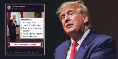 Novoizabrani predsednik SAD Donald Tramp objavio je na društvenoj mreži Truth Social fotografiju koji ismeva finansiranje Kijeva od strane aktuelnog predsednika Džoa Bajdena.
