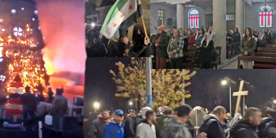 Stotine demonstranata izašlo je tokom noći na ulice u hrišćanskim oblastima Damaska u znak protesta zbog paljenja jelke nekoliko sati pre ponoći, uoči Badnjeg dana.