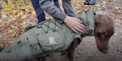 Dobrovoljci Narodnog fronta sašili su pancir za Zevsa, dobermana koji pomaže svom vlasniku Vadimu, pozivni znak 911, da izvrši borbene zadatke na prvoj liniji fronta u zoni specijalne vojne operacije.