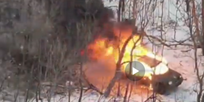 Pikap je bio uništen posadom FPV drona. Nakon direktnog udara, automobil se zapalio.
