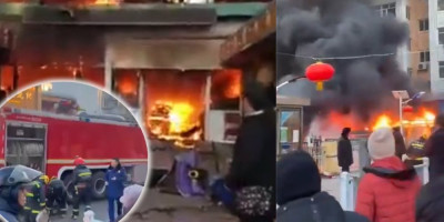 Nad pijacom su se videli plamen i tamni oblaci dima, pokazali su video snimci objavljeni na kineskom sajtu Veibo.