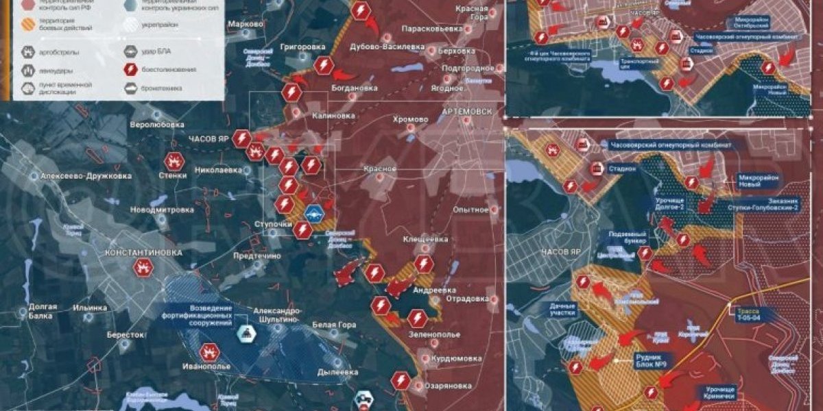 Na pravcu Časovog Jara, ruske jedinice približile su se rudnicima Jugo-Vostočni i Bloku br. 9, prethodno potiskujući ukrajinske snage sa položaja kod jezera Kuznja i trakta Krinički. Borbe u urbanim delovima grada nastavljaju se, dok su ruske trupe uspele da prošire kontrolu na zapadnim obodima.