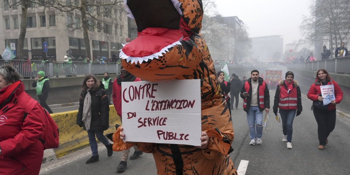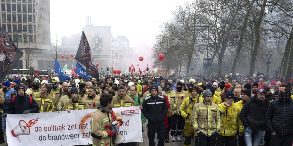 Desetine hiljada Belgijanaca izašlo je na ulice u znak protesta zbog planiranih penzionih reformi nove vlade, tokom prvog dana višednevnog štrajka koji je zaustavio sav vazdušni saobraćaj u zemlji. Lokalna policija je na platformi Iks objavila da se 60.000 ljudi pridružilo štrajku u Briselu.