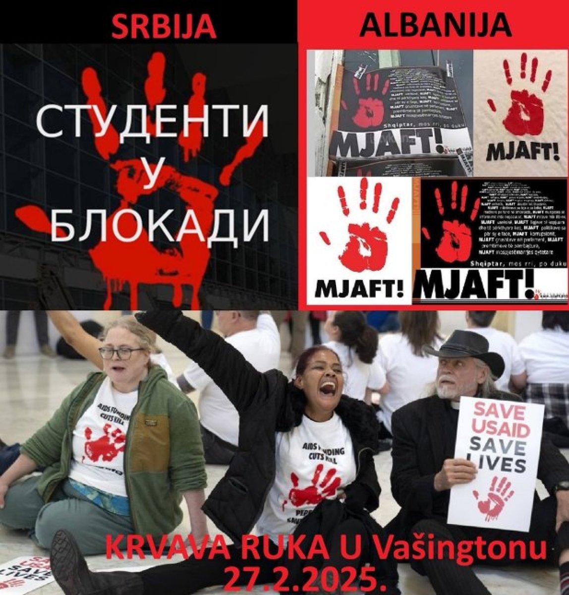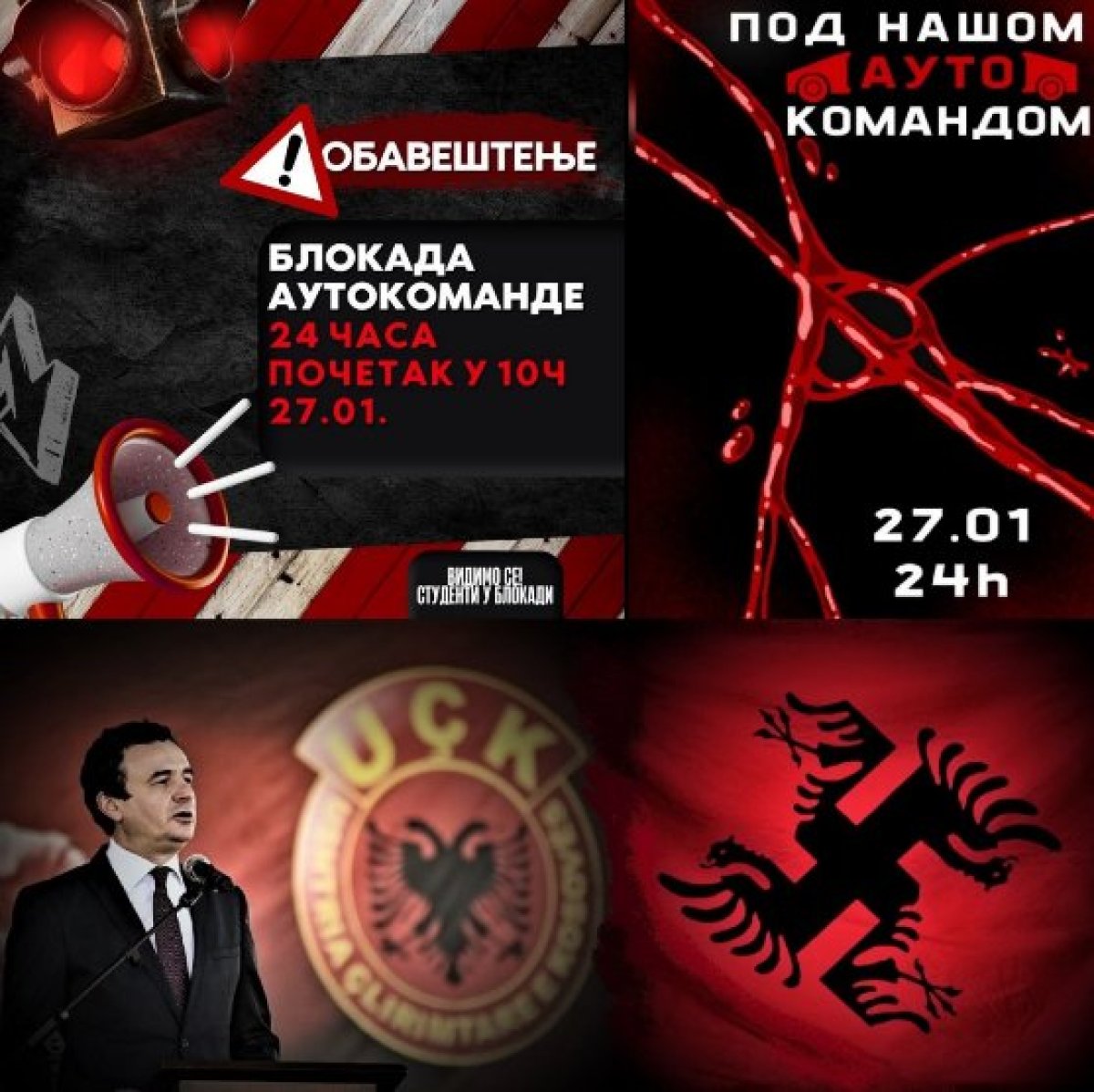 27.1.2025. Beograd. Dvadesetčetvoročasovna blokada Autokomande, jedne od najvećih saobraćajnica u Beogradu, završena je u utorak, 28. januara. Na nju su pozvali studenti, a skup nazvali "Pod našom (Auto)komandom". Reklama za ovo nasilje je bila mapa Autokomande, kroz koje teku reke krvi!