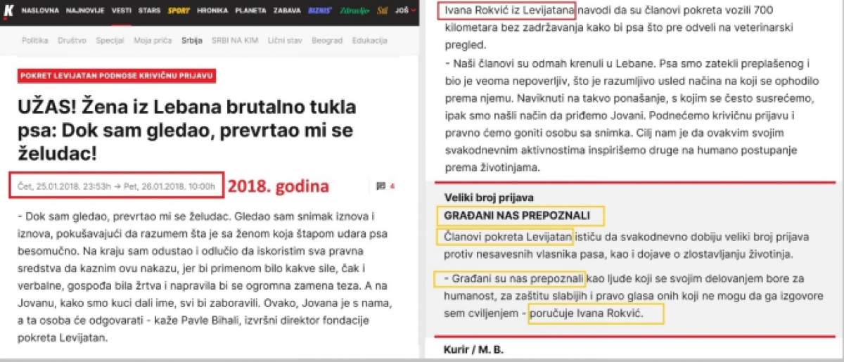 Potpredsednica NPS, Ivana Rokvić je bila liderka ekstremnog političkog pokreta „Levijatan“ koji navodno brani prava životinja Tako je list „Kurir“ 25.01.2018. godine, objavio tekst pod naslovom: „UŽAS! Žena iz Lebana brutalno tukla psa: Dok sam gledao, prevrtao mi se želudac!“. U tom tekstu stoji: „Javnost je šokirana nemilim scenama, a članovi Levijatana uspeli su da spasu nesrećnu životinju. Oni su pre tri dana dobili dojavu i video-zapis o psu koga bije vlasnica.- Dok sam gledao, prevrtao mi se želudac, kaže Pavle Bihali, izvršni direktor fondacije pokreta Levijatan. Ivana Rokvić iz Levijatana navodi da su članovi pokreta vozili 700 kilometara bez zadržavanja kako bi psa što pre odveli na veterinarski pregled. - Naši članovi su odmah krenuli u Lebane. Podnećemo krivičnu prijavu i pravno ćemo goniti osobu sa snimka.