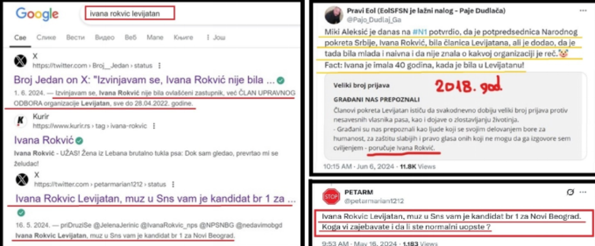 Građani su nas prepoznali kao ljude koji se svojim delovanjem bore za humanost, za zaštitu slabijih i pravo glasa onih koji ne mogu da ga izgovore sem cviljenjem - poručuje Ivana Rokvić“. Biljana Lukić i drugi đilasovci su 16.5.2024. optuživali Ivanu Rokvić da je njen suprug „prvi na listi SNS u opštini Novi Beograd“. Ivana Rokvić je negirala da je bila u „Levijatanu“ i pored jasnih dokaza.