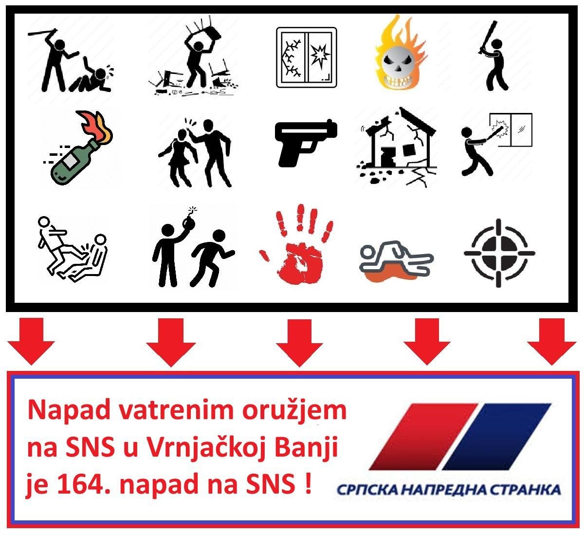 Pored ovih podataka sa tačnim datumima, dodatno su napadane sledeće prostorije SNS: Novi Sad još 20 puta, Smederevo 2 puta, Bečej 2, Zrenjanin 2 puta, Voždovac 4, Kragujevac 4, Zvezdara 3, Rakovica 3, Lazarevac 3 puta, Pančevo 2 puta, Novi Beograd 11 puta, Stari grad 3 puta, Zemun 3 puta, Čačak 3, Bački Petrovac 2 puta, Šabac 3, Mladenovac 3 puta, Niš 4 puta, Palilula 3 puta, itd. Još jednom su bile napadane prostorije SNS - Sombor, Vranje, Vršac, i Valjevo. Nabrojao sam samo deo napada, bilo ih je još, ali nisu svi zabeleženi u medijima i na internetu.