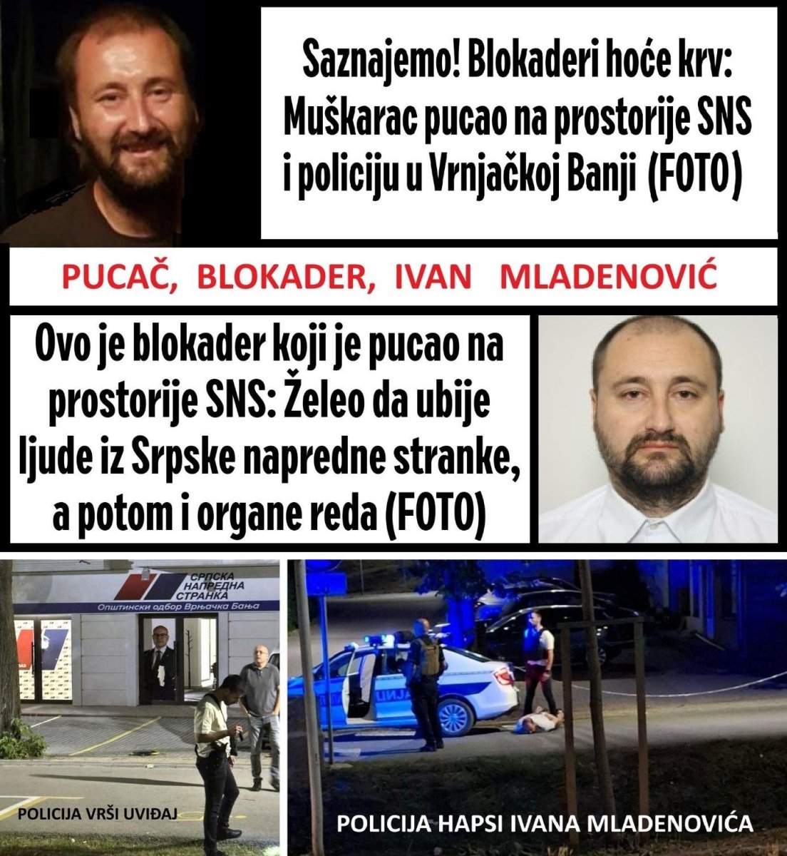 Mladenović je ispalio desetak metaka u prostorije SNS, ali i na policiju, koja je uspela da ga razoruža, savlada i uhapsi. Očigledno da je njegova namera bila da ubija ljude iz SNS, a potom i policajce. Ivan Mladenović je prijatelj Draže Petrovića, glodura lista "Danas“, i blokadera Nemanje Šarovića i Zlatka Kokanovića. Opozicioni mediji su potpuno prećutali ovaj napad vatrenim oružjem, kada je blokader izrešetao prostorije SNS.