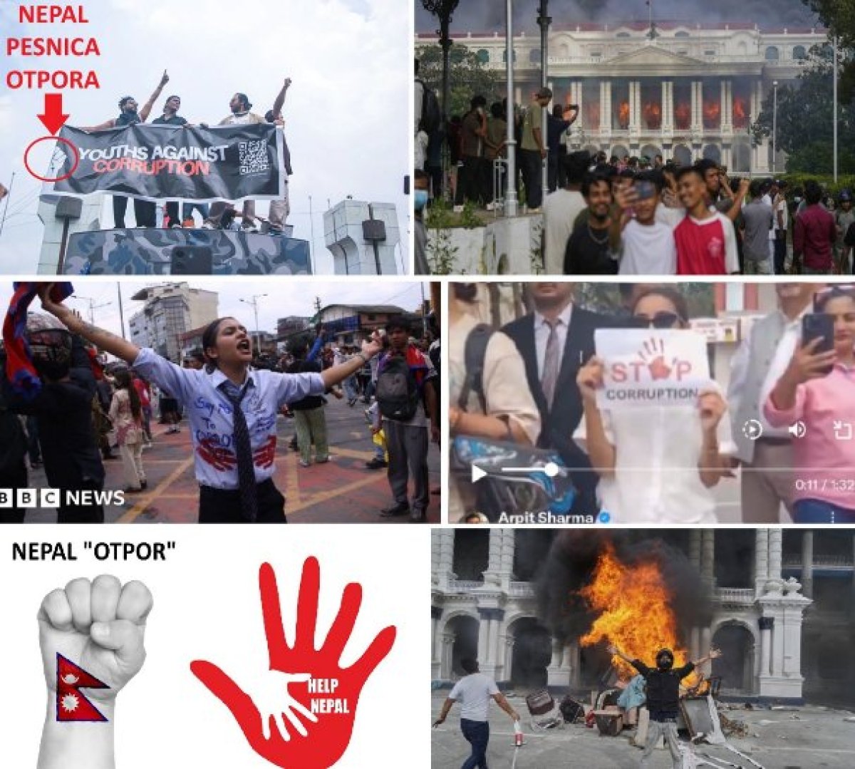 Ni slučajno! Ukrajinski ili srpski scenario? Rulja spaljuje parlament, veliki broj žrtava, sukobi na ulicama, ubistva, pljačke... Ikonografija protesta u Nepalu je crvena šaka, bela pesnica, slogani izgrednika i nasilnika su: „Protiv korupcije“, „Ruke vam krvave“, u prvi plan gurnuti studenti, školarci, mladi... Prepoznajem delo majstora, "zanatlija" sa Zapada. Klasika. Zapad i Soroš su munjevito lansirali crvenu i belu šaku i „Majdan“ - krvavu obojenu revoluciju u Nepalu! Šta je uzrok haosa u Nepalu? Pad ili rušenje nekog objekta, povećanje cena? Ne, pale su društvene mreže, koje je zatvorila Vlada Nepala, na osnovu zakona donetog pre dve godine. Vlada je blokirala 26 platformi, uključujući WhatsApp, Facebook, Instagram, LinkedIn i YouTube. Shvativši grešku, Vlada Nepala je ubrzo otvorila društvene mreže, ali je bilo kasno. Zapad je već pustio duha iz boce.