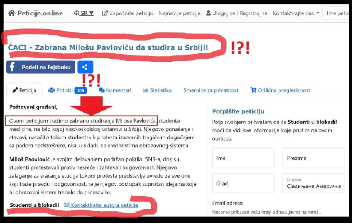 Setimo se da su u junu 2025. su nacisti zboraši blokaderi su organizovali peticiju da se u Srbiji zabrani studiranje, Milošu Pavloviću „Ćaciju“, najboljem studentu Medicinskog fakulteta, Vladimiru Balaću i drugim studentima koji žele da uče. Studentu Vladimiru Balaću su blokaderi zabranili da uđe na FTN, a studentu Luki Laloševiću nisu dozvolili da uđe na FPN. Iste ovakve metode koristili nacisti, tridesetih godina kada su studentima Jevrejima onemogućavali pristup zgradama fakulteta.