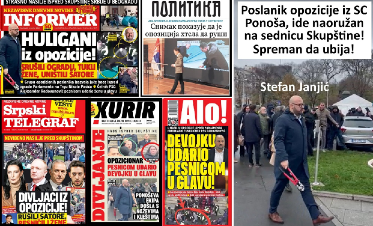 Prvo ću govoriti o lažnim vestima opozicije i N1/NovaS. Antisrpska tajkunska TV N1 je 27.11.2025. objavila lažnu vest pod nazivom: „ZLF: Ljudi iz Ćacilenda pretili klanjem Biljani Đorđević po izlasku iz Skupštine“.