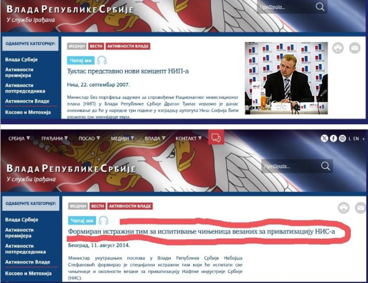 Dragan Đilas je bio ministar za NIP (Nacionalni investicioni plan) od maja 2007. do jula 2008. godine. Bio je ministar za Nacionalni investicioni plan baš u vreme prodaje NIS. Ministar Đilas je prodaju NIS-a uvrstio kao jednu od glavnih tačaka Nacionalnog investicionog plana. Đilas bljuje gluposti u vezi prodaje NIS-a, i želi da se niko ne seti da su baš on i njegov sadašnji potpredsednik stranke SSP, Borko Stefanović, bili među glavnim akterima kriminalne prodaje NIS-a 2008. godine. Baš danas Đilas je ponovo lansirao niz nesuvislosti o NIS-u, i niz besmislenih optužbi na račun predsednika Vučića – kao da je Vučić kriv za prodaju NIS. Vučić je te 2008. bio opozicija, a ne vlast.