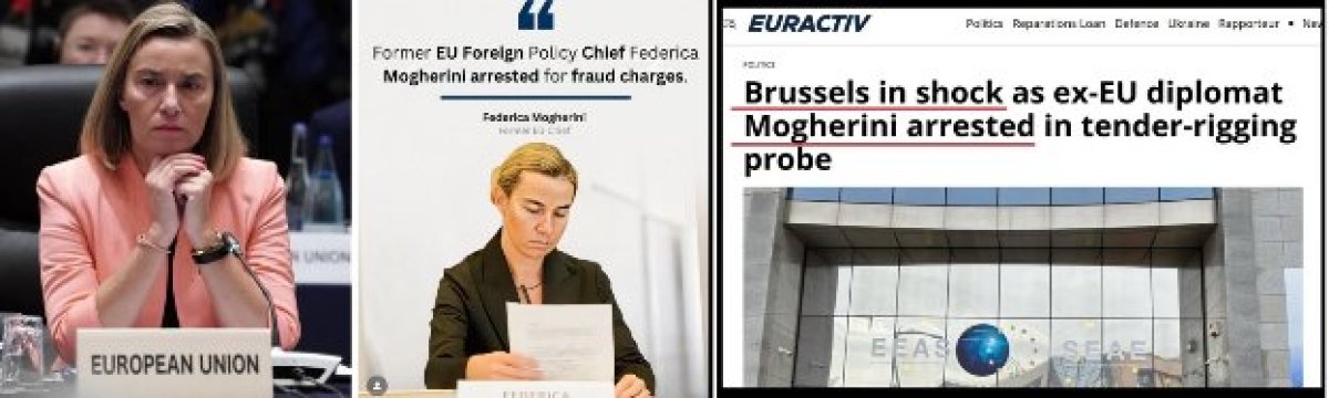 Pre dve nedelje svi svetski mediji su javili da je Federika Mogerini, bivša visoka predstavnica EU za spoljnu politiku i bezbednost, privedena tokom velikih policijskih racija u okviru istrage o finansijskim malverzacijama, u antikorupcijskoj istrazi, pod optužbom za proneveru i nameštanje tendera u vezi sa „Koledžom Evrope“, na čijem je čelu bila u trenutku hapšenja. Mogerini je članica Demokratske partije (PD), koja je deo Partije evropskih socijalista. Pre toga je bila članica Kominističke partije Italije. Bila je i ministarka spoljnih poslova i međunarodne saradnje Italije od februara do oktobra 2014. u vladi Matea Rencija. Pored nje uhapšen je i Stefano Sanino, sadašnji Direktor Generalnog direktorata Evropske komisije za Bliski istok, Severnu Afriku i Persijski zaliv, bivši generalni sekretar Evropske službe za spoljne poslove (EEAS). Sanino je bio u Beogradu šef misije OEBS-a u SRJ od 2001 do 2002. godine. Pored njih dvoje, uhapšen je i kodirektor „Koledža Evropa“ Ćezare Zegreti., Mogerini je optužena, kako je saopštio Evropski javni tužilac (EPPO), za niz krivičnih dela: proneveru u javnim nabavkama, korupciju, sukob interesa i kršenje službene tajne. Dan kasnije Mogerini je podnela ostavku na mesto dekana Koledža, ali ovaj slučaj baca novo, sumorno svetlo na kredibilitet institucija Unije. Ko poznaje ustrojstvo EU birokratije u Briselu i Strazburu, zna da je korupcija, podrazumevajuću, duboko ukorenjeni deo procedura EU.