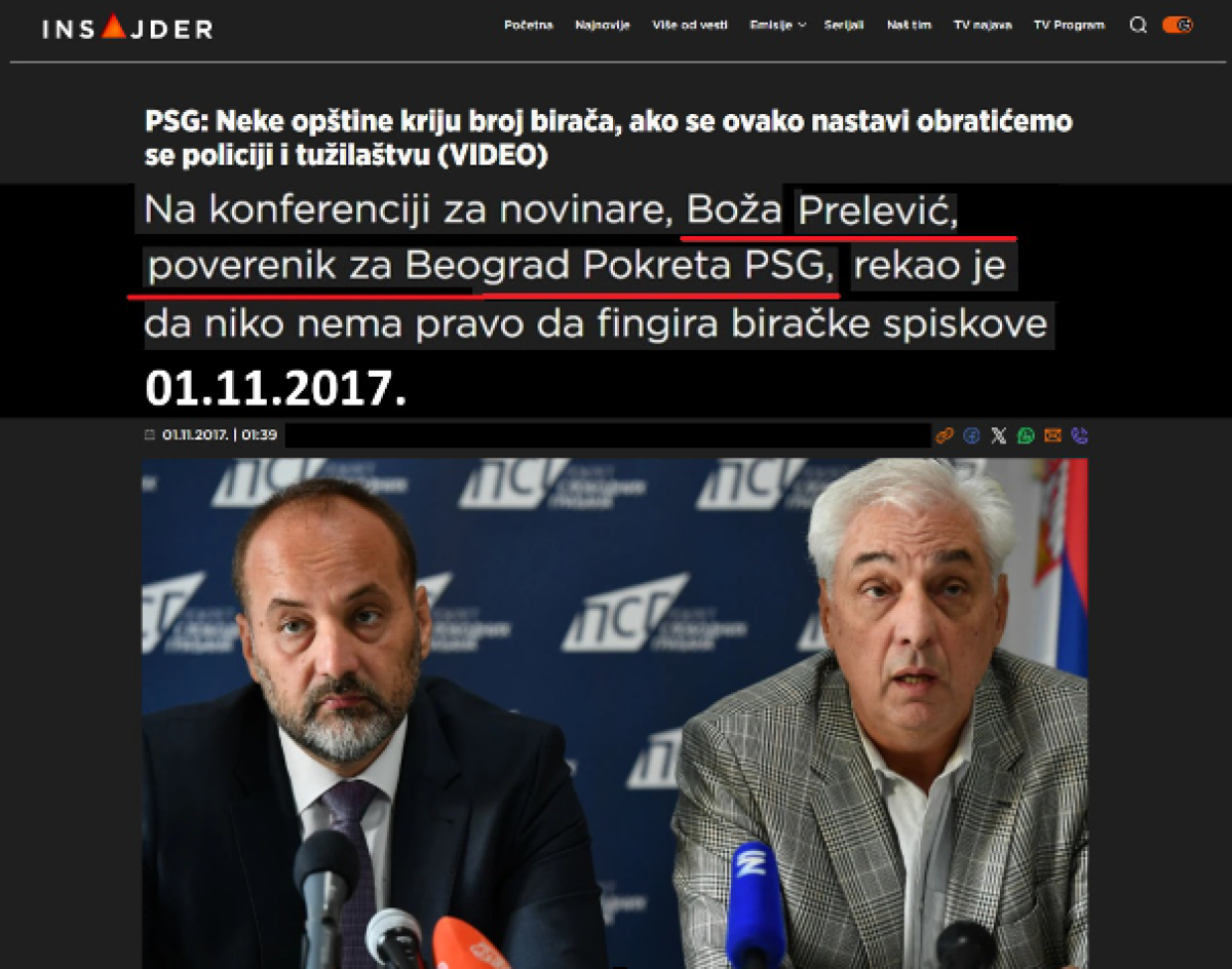 Božo Prelević sam ističe da je bio član NVO Otpor, NVO G17 plus i NVO „Skupština slobodne Srbije“. Bio je i poverenik za Beograd, stranke PSG tokom 2017. godine. Sve su to bile antisrpske organizacije. „Skupštinu slobodne Srbije“ su osnovali 2020. godine, Božo Prelević, Biljana Stojković, Čedomir Čupić, Dušan Teodorović i Savo Manojlović. Ta NVO je imala ambicije da postane politička stranka, ali je opozicija tu NVO videla kao konkurenciju, pa je ta NVO zamrla.