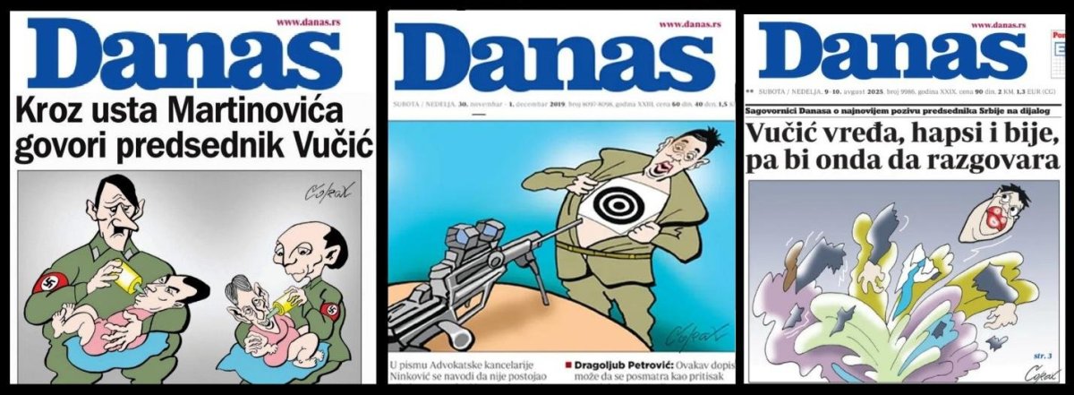 List „Danas“ je 14.3.2026. objavio sramnu naslovnu stranu na kojoj je nactrana meta na grudima Miloša Vučevića. List „Danas“ želi da se ne setimo da je prošle godine u julu mesecu, više puta sramno targetirao Miloša Vučevića i njegovu porodicu i da je 16.7.2025. godine, objavio adresu stana Miloša Vučevića i njegove porodice, i dodatno fotografiju zgrade u kojoj stanuje Miloš Vučević sa porodicom.