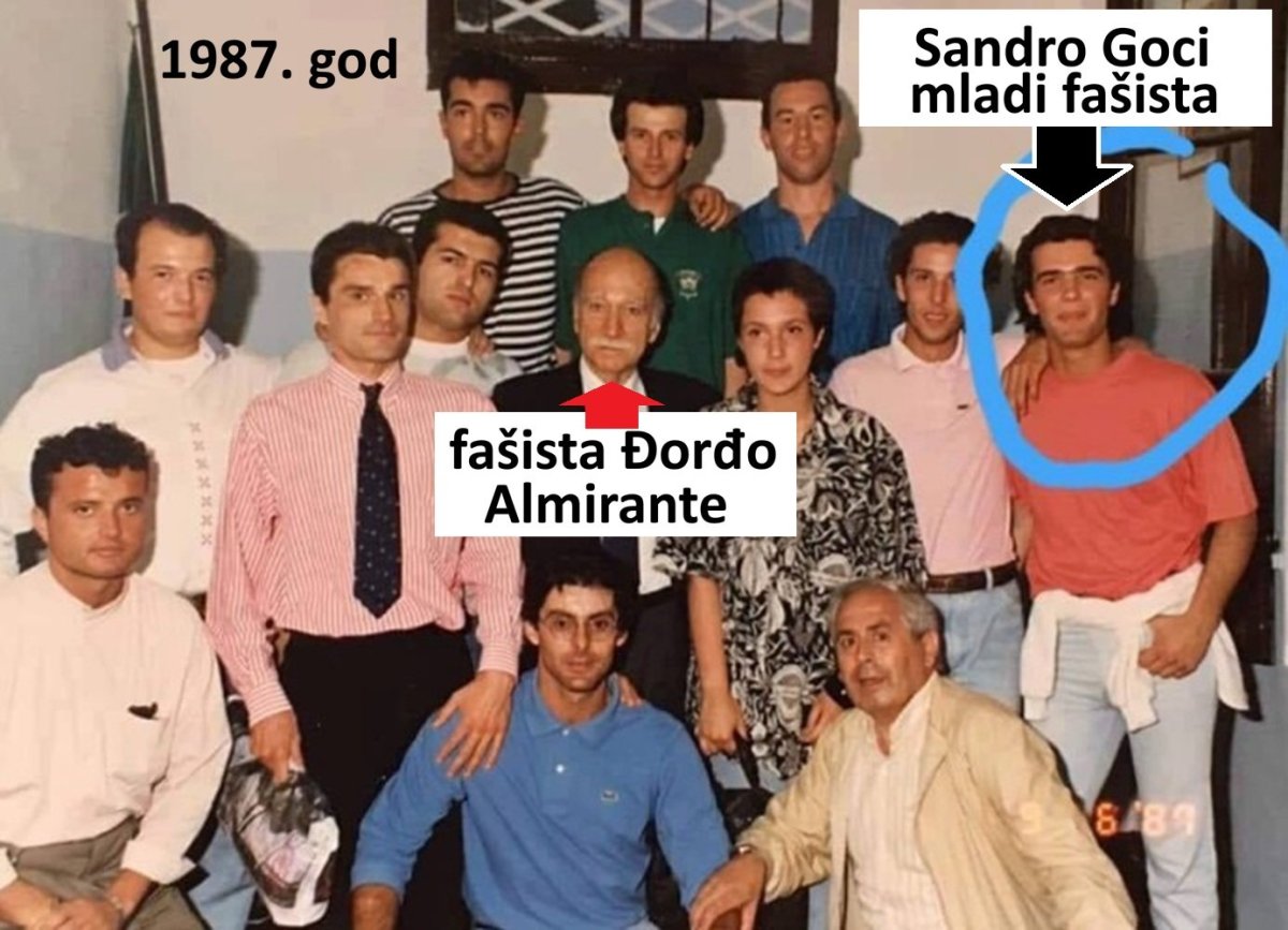 Na Vikipediji, stranica „Sandro Goci“ stoji: „Tokom svojih univerzitetskih godina, Goci je bio blizak postfašističkom italijanskom MSI, Đorđa Almirantea, sa kojim se sliakao na fotografiji. 1990. bio je je član MSI – Forli omladinskog fronta“ („During his university years, Gozi was close to the post-fascist Italian Social Movement (MSI) of Giorgio Almirante, with whom he is portrayed in a photo. In 1990, he was a member of the MSI's Forlì Youth Front“).