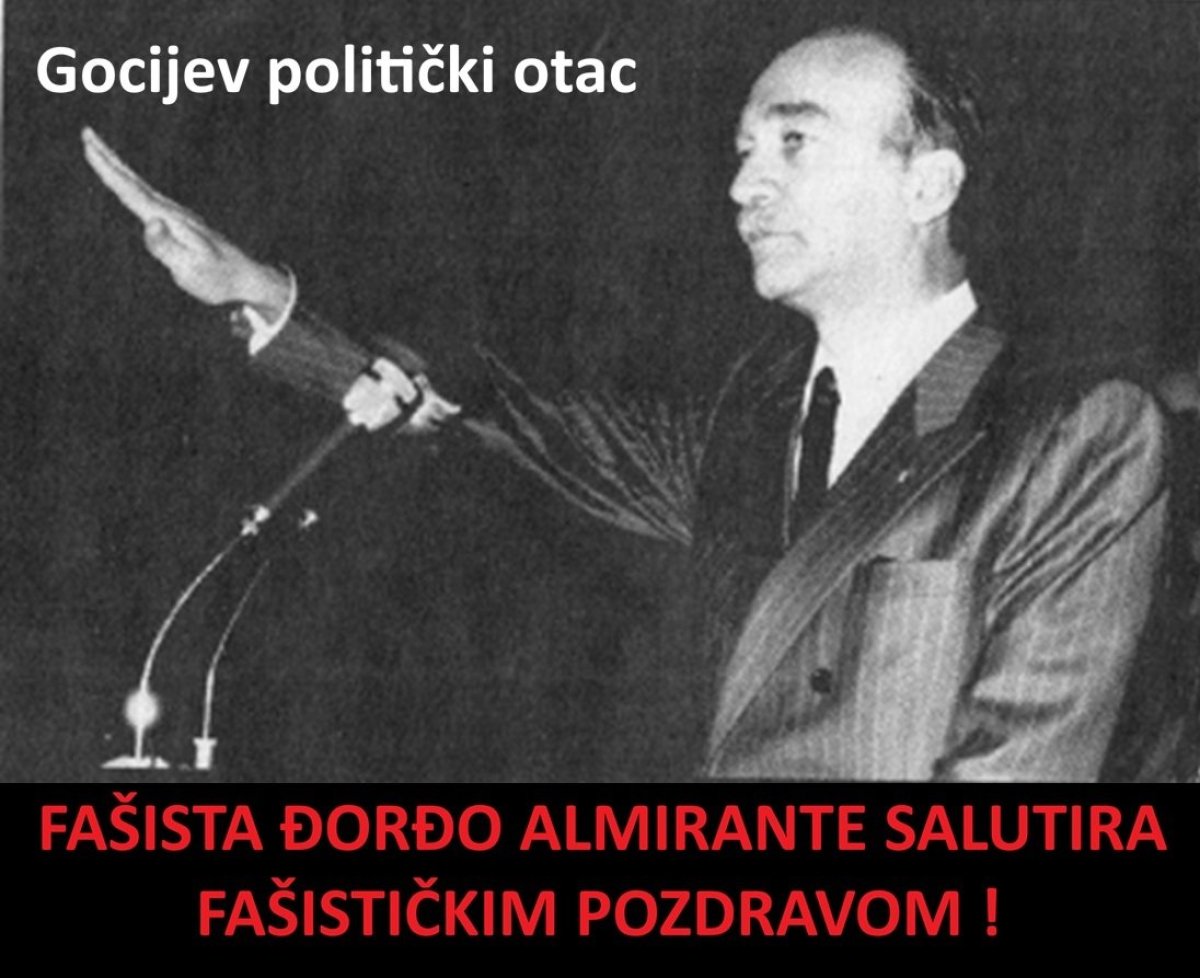 Goci panično krije da je bio član neofašističke stranke MSI (Movimento Sociale Italiano) od 1984. do 1992. godine - od svoje 16, pa do 24 godine života. Bio je član podmlatka te stranke, i ima fotografije sa fašistom Đorđom Almiranteom, osnivačem te neofašističke stranke. Ako neko ne veruje meni da vidimo šta kaže Vikipedija o italijanskoj stranci MSI? Na Vikipediji, stranica „Italian Social Movement“ stoji: