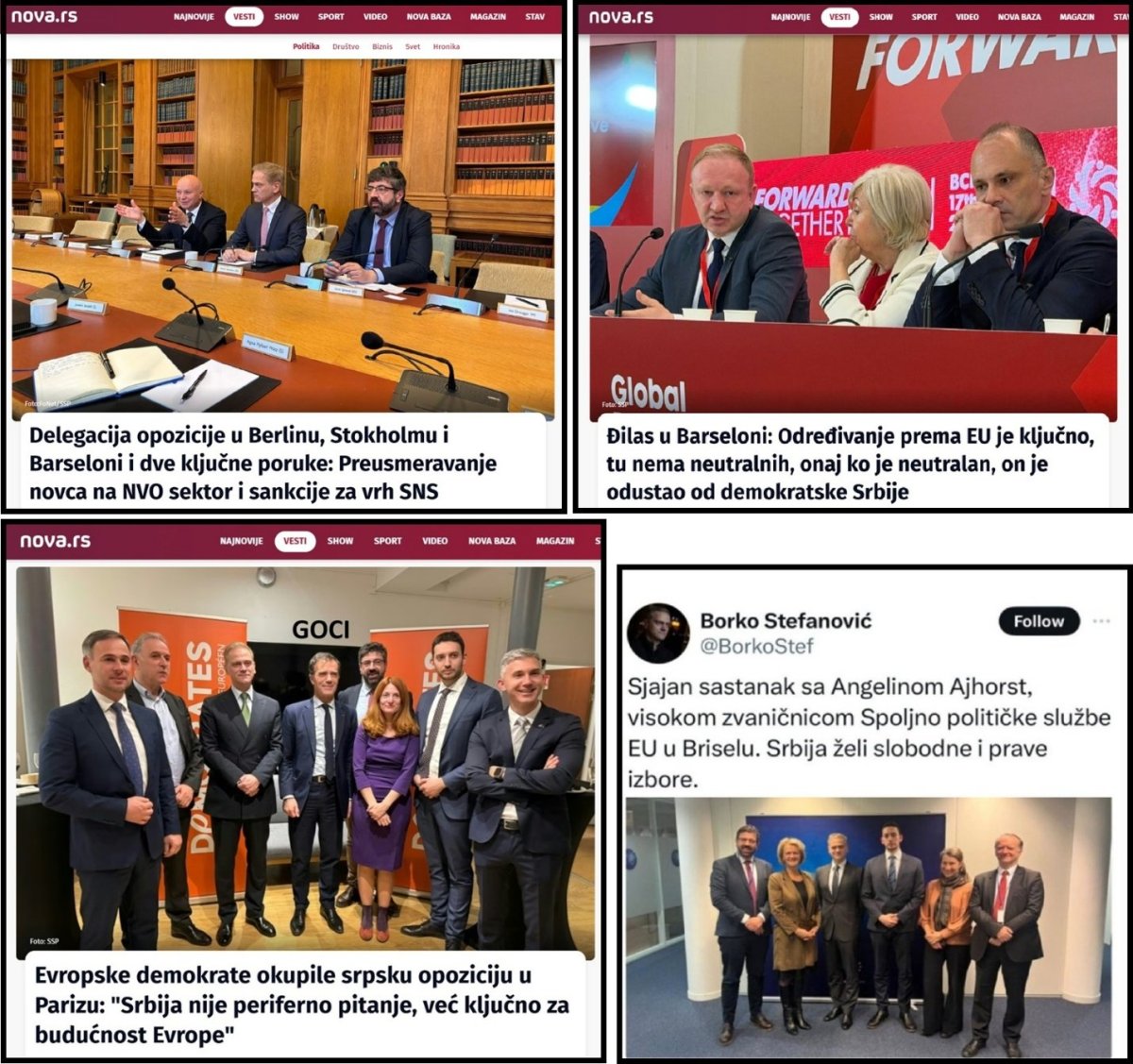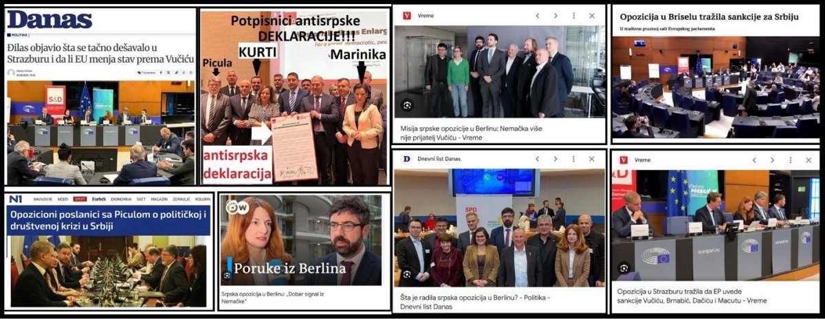 Pre par dana, Dragan Đilas, Marinika Tepić i Borko Stefanović iz SSP i Srđan Milivojević, predsednik DS su bili su u Barseloni, u društvu Aljbina Kurtija, na skupu socijal demokrata Evrope, i svi zajedno su zahtevali da se uvedu sankcije Srbiji. Pre nekoliko dana Radomir Lazović i Borko Stefanović su odleteli u Stokholm tražeći isto. Pre 6 dana u Berlinu, na sastanku u nemačkom Ministarstvu inostranih poslova bili su Zdravko Ponoš, Pavle Grbović, Radomir Lazović i Borko Stefanović, uz iste zahteve - uvedite sankcije Srbiji. Za Vaskrs, 11.4.2026. izvestilac Evropskog parlamenta, Tonino Picula je poručio građanima Srbije, da će se boriti da se Srbiji ukinu svi EU fondovi. Picula je izjavio: „Jačanje represije nad građanima, gušenje medijskih sloboda, urušavanje pravosuđa i integriteta izbora su razlozi da EU promijeni ne samo narativ prema službenom Beogradu nego prije svega politiku podilaženja Vučićevom režimu. Moguća obustava jasno kondicioniranih sredstva iz fondova EU jedina je poruka od koje on zaista strepi". Piculina Vaskršnja poruka narodu Srbije, je da Srbiji želi manje novca za škole, bolnice, životnu sredinu, puteve i pruge, samo zbog toga što građani Srbije sami žele da biraju ko će da vodi Srbiju i zbog toga što građani Srbije podržavaju Aleksandra Vučića. Pre toga je Tonino Picula predsedniku Srbije zamerio što vodi prosrpsku politiku.