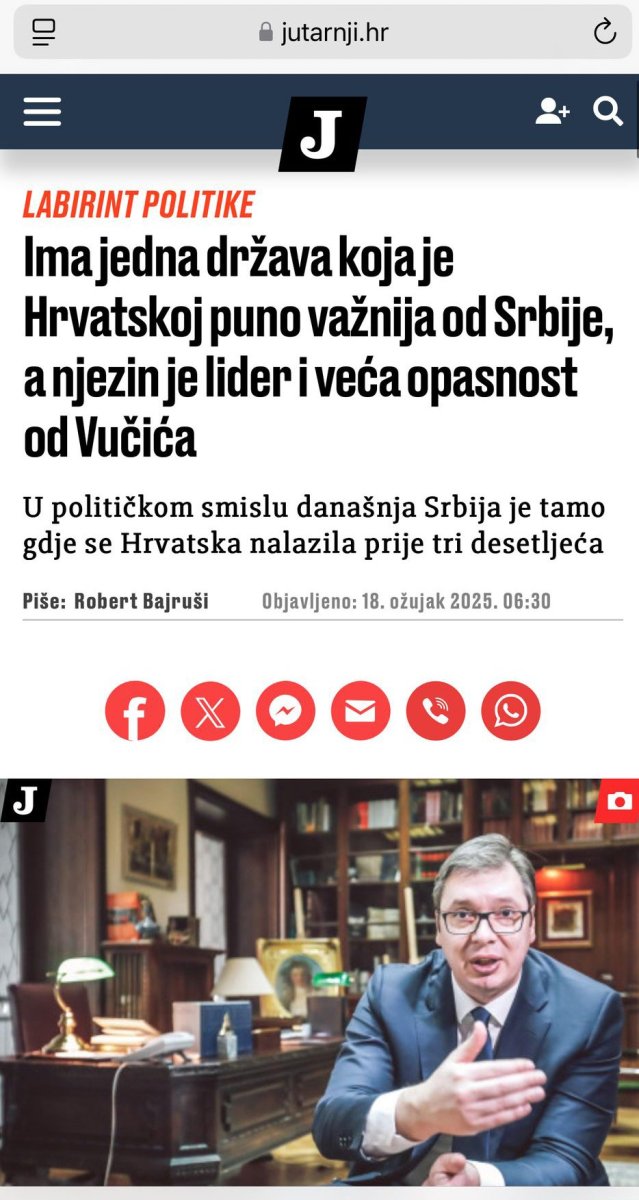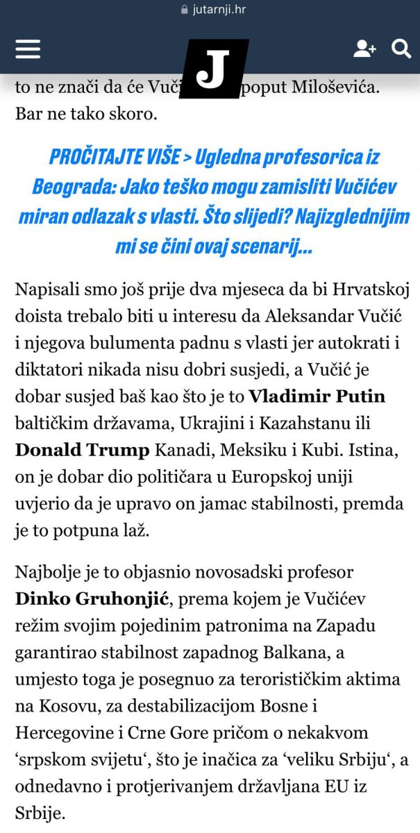 Najnoviji tekst Jutarnjeg lista pokazuje da je za njih nacionalni interes rušenje Vučića sa vlast i da je Srbija "glavna pretnja" Hrvatskoj, stavljajući je u isti koš sa Mađarskom, čiji lider Viktor Orban takođe nije po volji zapadnim centrima moći.