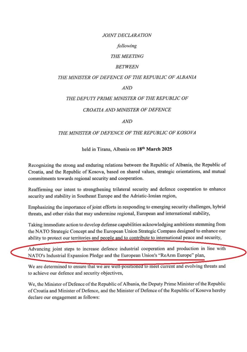 U tom istom dokumentu, međutim, piše doslovce da će se Zagreb, Tirana i Priština "naoružavati"!?! Protiv koga i zašto?! Odgovor je više nego jasan...