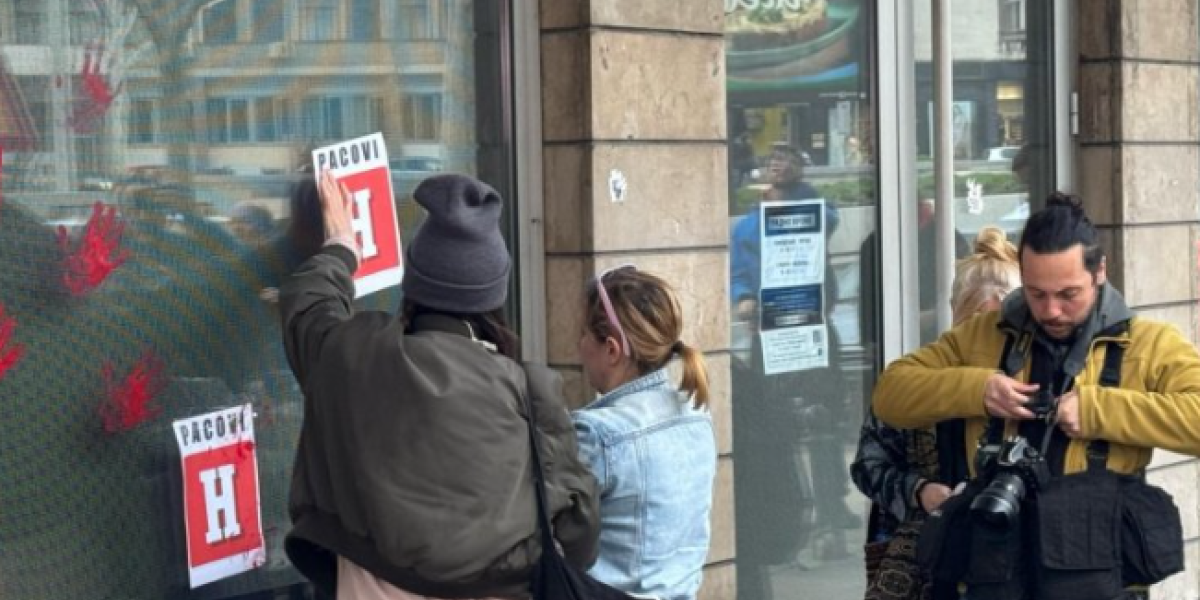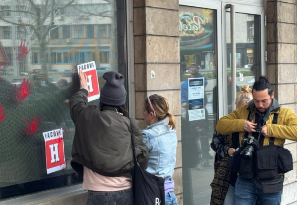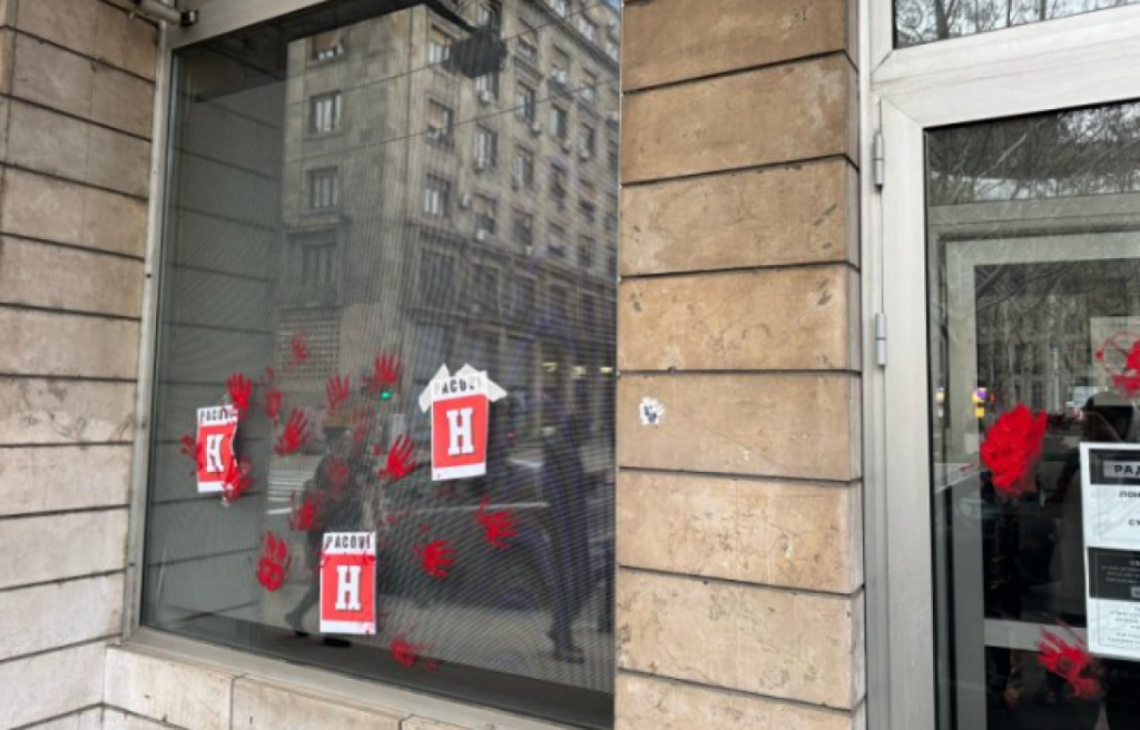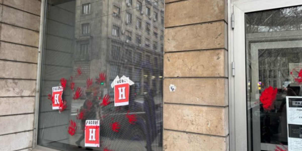 Na zgradu u kojoj se nalaze Novosti oni su nacrtali krvave šake. Naravno u svom maniru vređanja oni naše zaposlene nazvali pogrdnim imenima u kratkom govoru koji su održali ispred kompanije "Novosti".