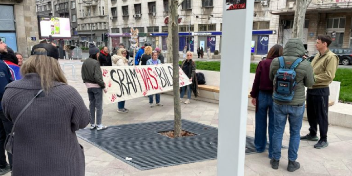 Njihov današnji protest na Tviteru je celi dan bio pompezno najavljivan kao "linija sramote". Ipak, na Trgu Nikole Pašića, gde je bilo najavljeno okupljanje, skupilo se svega njih dvadesetak.